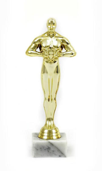F 201 – Oszi szobor gravírozott táblával Az F 201-es Oszi szobor egy 21,5 cm magas, arany színű műanyag díj, amely ideális választás különféle elismerésekhez vagy emléktárgyként. A termékhez tartozik egy gravírozott tábla, amelyet a díj talpazatára helyezünk el. A tábla színe választható: arany vagy ezüst. A gravírozás díja benne foglaltatik az árban, így nincs plusz költség. ? Termékjellemzők: