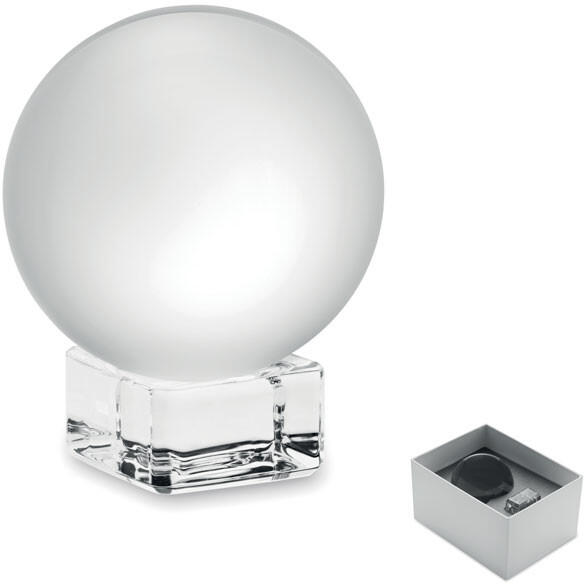 Gömb alakú, üveg díj vagy emlékplakett talapzattal. Ajándékdobozban.