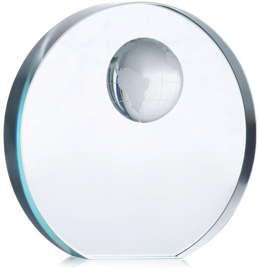 Elegáns, kerek üvegdísz. Tetején fél földgömb mintával. Ajándékdobozban.